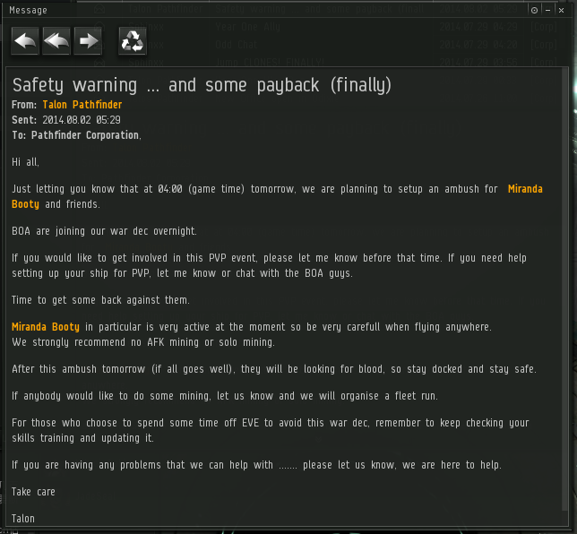这高安区宣战是正常的事,但是总觉得差不多就行了,别天天抓我们这采矿船没完没了啊。在损失了四艘Retriever后,CEO终于坐不住了,于是收到了这封邮件。